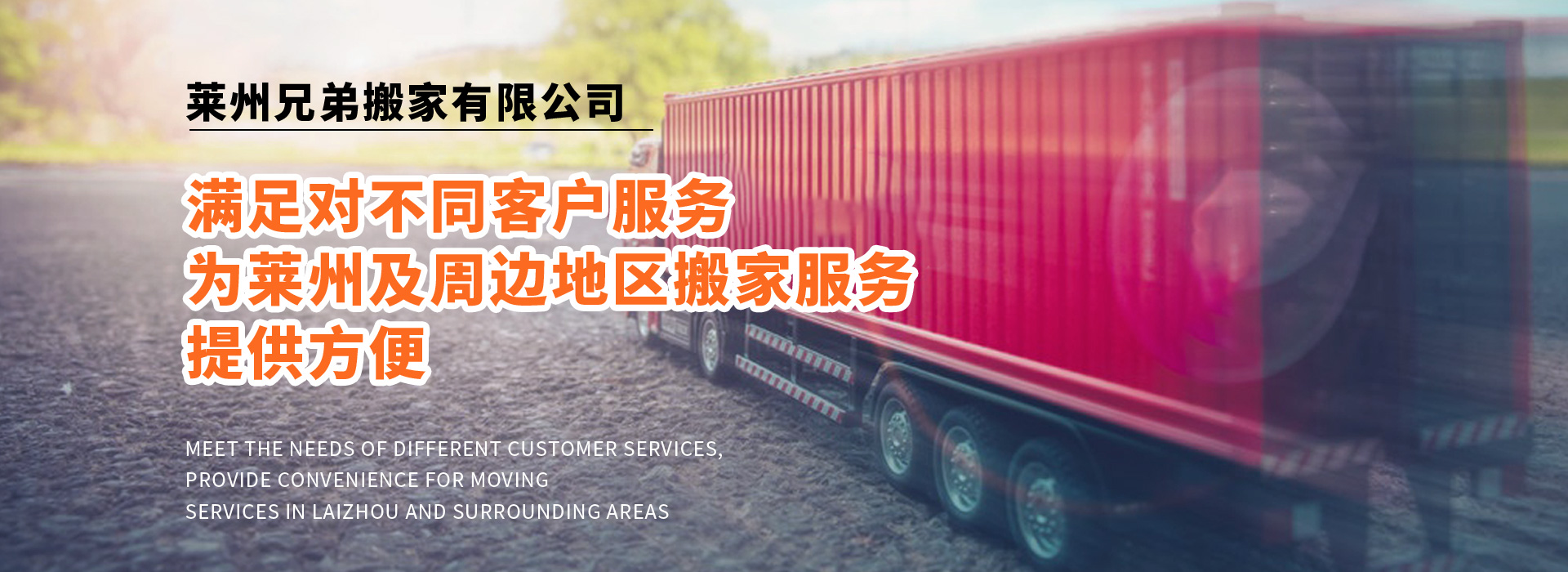公司備有:廂式貨車、普通貨車、面包車等,滿足對不同客戶服務(wù),為萊州及周邊地區(qū)搬家服務(wù),提供方便。曾被廣大客戶評為“專業(yè)、專心、用心”的搬家公司。以合理收費為標(biāo)準(zhǔn),以客戶滿意為服務(wù)質(zhì)量,力作萊州人的好兄弟!您的滿意就是我們的追求!歡迎各企事業(yè)單位及個人來電咨詢!